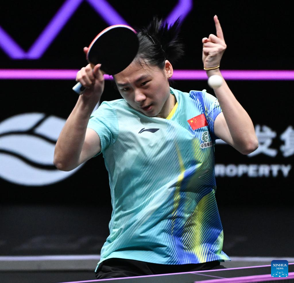 CHONGQING, March 13 (Xinhua) -- World No. 1 Sun Yingsha of China advanced to the women's singles quarterfinals with a straight-game victory over Adriana Diaz of Puerto Rico at the World Table Tennis Champions Chongqing tournament on Friday.