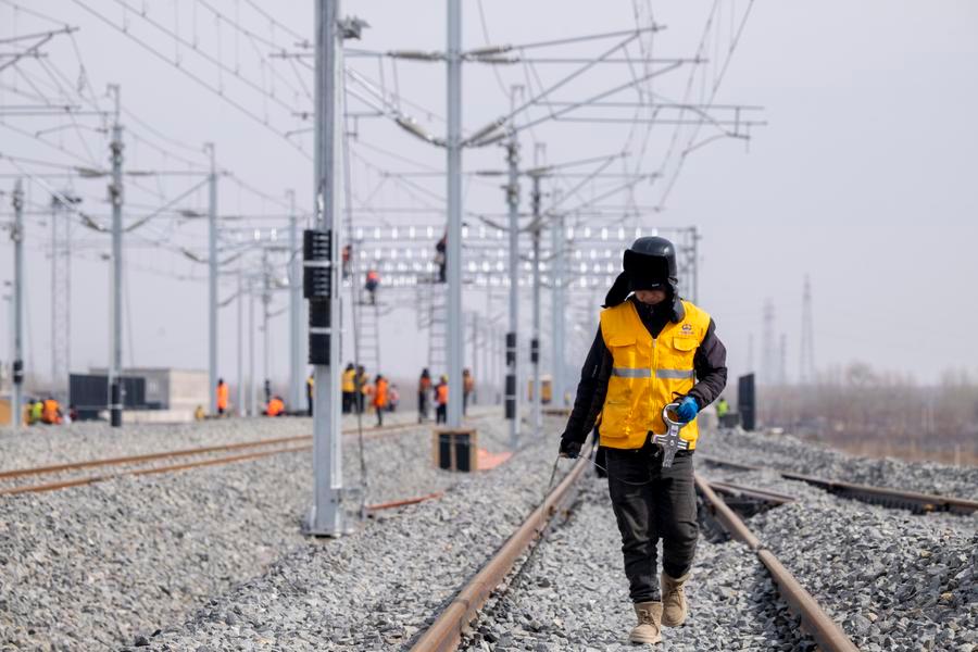 A worker carries out surveying work at the construction site of Suihua South Station of the Harbin-Yichun high-speed railway in Suihua, northeast China's Heilongjiang Province, March 13, 2026. (Xinhua/Zhang Tao)A drone photo taken on March 13, 2026 shows the construction site of Suihua South Station of the Harbin-Yichun high-speed railway in Suihua, northeast China's Heilongjiang Province. (Xinhua/Zhang Tao)A worker installs signal equipment at the construction site of Suihua South Station of the Harbin-Yichun high-speed railway in Suihua, northeast China's Heilongjiang Province, March 13, 2026. (Xinhua/Zhang Tao)A worker carries out surveying work at the construction site of Suihua South Station of the Harbin-Yichun high-speed railway in Suihua, northeast China's Heilongjiang Province, March 13, 2026. (Xinhua/Zhang Tao)Workers install catenary systems at the construction site of Suihua South Station of the Harbin-Yichun high-speed railway in Suihua, northeast China's Heilongjiang Province, March 13, 2026. (Xinhua/Zhang Tao)Workers install catenary systems at the construction site of Suihua South Station of the Harbin-Yichun high-speed railway in Suihua, northeast China's Heilongjiang Province, March 13, 2026. (Xinhua/Zhang Tao)■