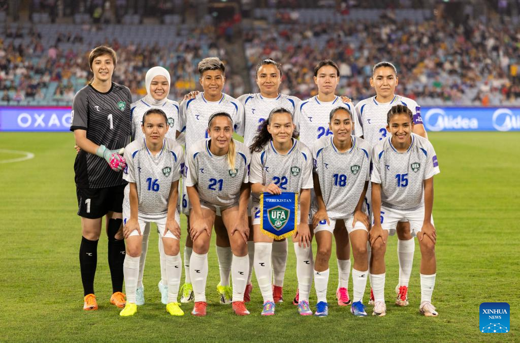 Team Uzbekistan line-up before the quarterfinal of Women's Asian Cup between South Korea and Uzbekistan in Sydney, Australia, March 14, 2026. (Xinhua/Hu Jingchen)
