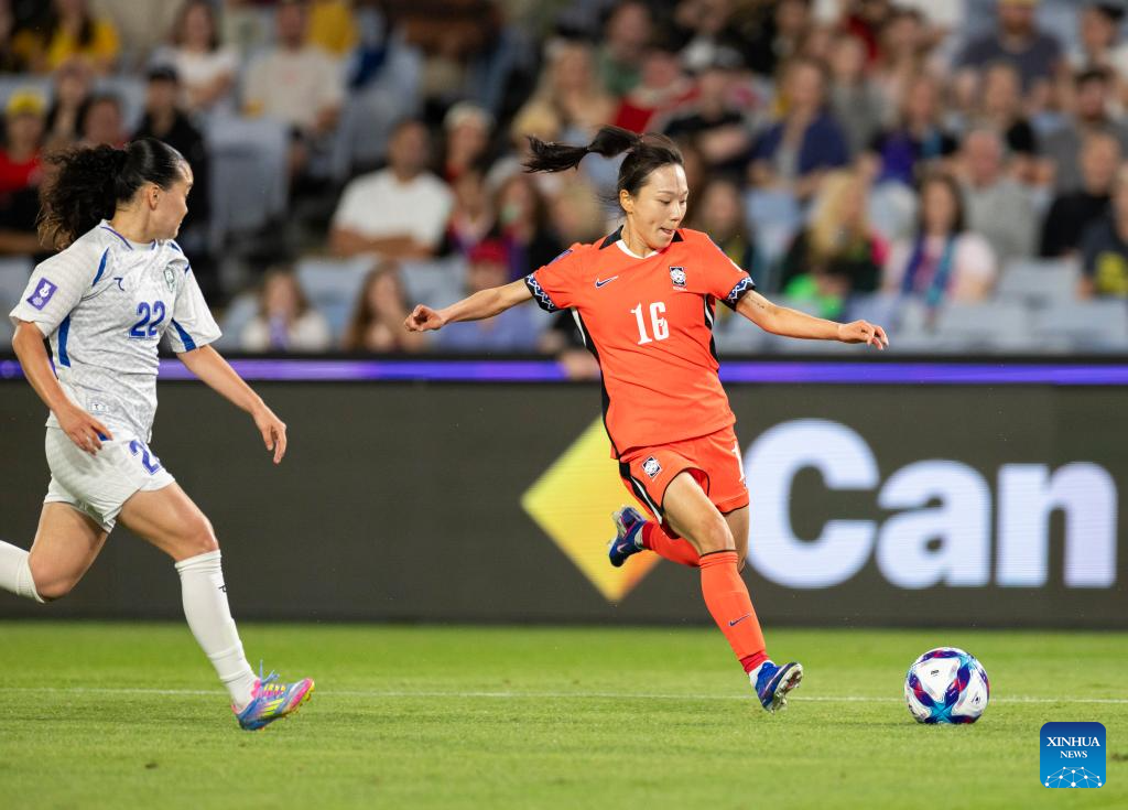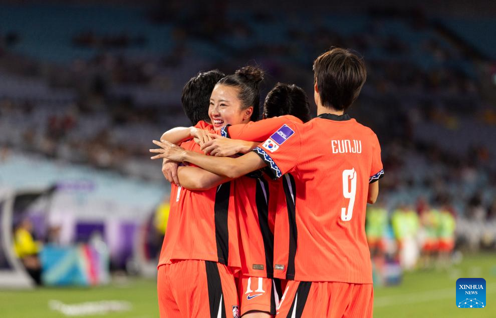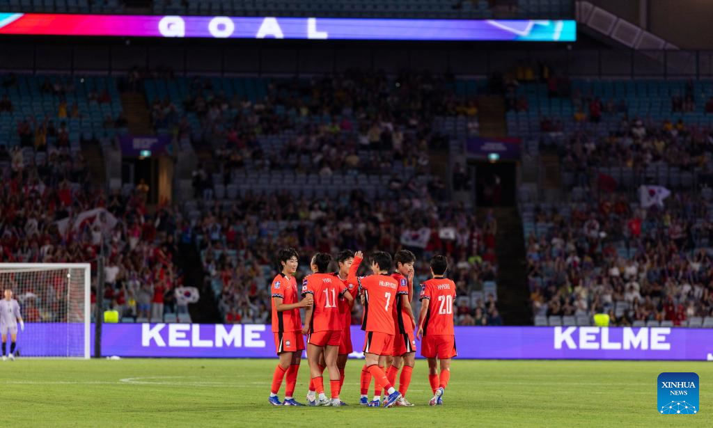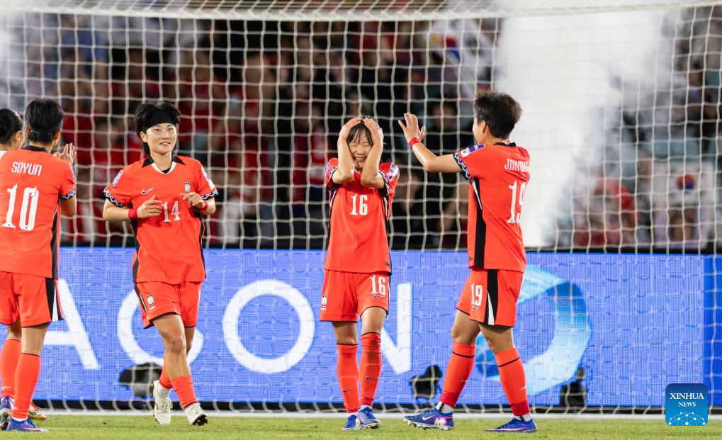 Players of South Korea celebrate a score during the quarterfinal of Women's Asian Cup between South Korea and Uzbekistan in Sydney, Australia, March 14, 2026. (Xinhua/Hu Jingchen)