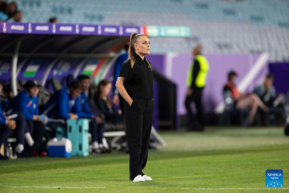 Kotryna Kulbyte, head coach of Uzbekistan, reacts during the quarterfinal of Women's Asian Cup between South Korea and Uzbekistan in Sydney, Australia, March 14, 2026. (Xinhua/Hu Jingchen)