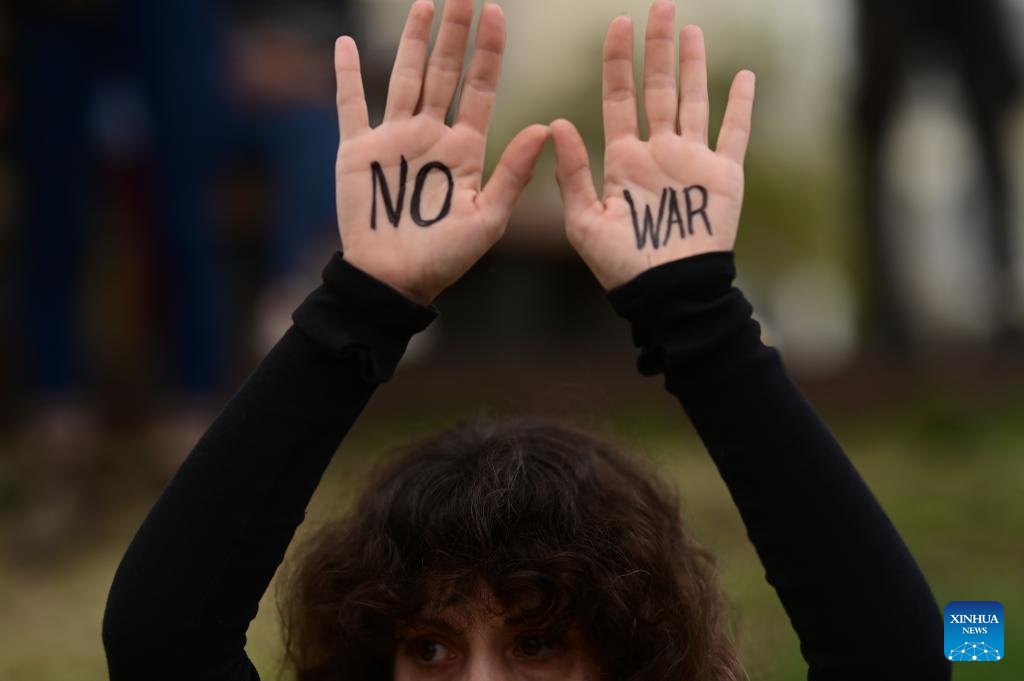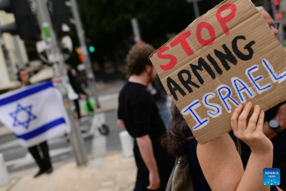 People take part in a rally to protest against U.S.-Israeli attacks on Iran and demand an end to all acts of war in Tel Aviv, Israel, March 14, 2026. (Tomer Neuberg/JINI via Xinhua)