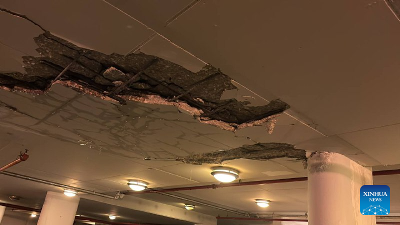 This undated photo released by Israeli media shows the damaged residential building of U.S. consul in Israel. Shrapnel from an Iranian missile fired into central Israel has hit the residential building used by the U.S. consul in Israel, Israel's state-owned Kan TV News reported on Sunday. (Xinhua)