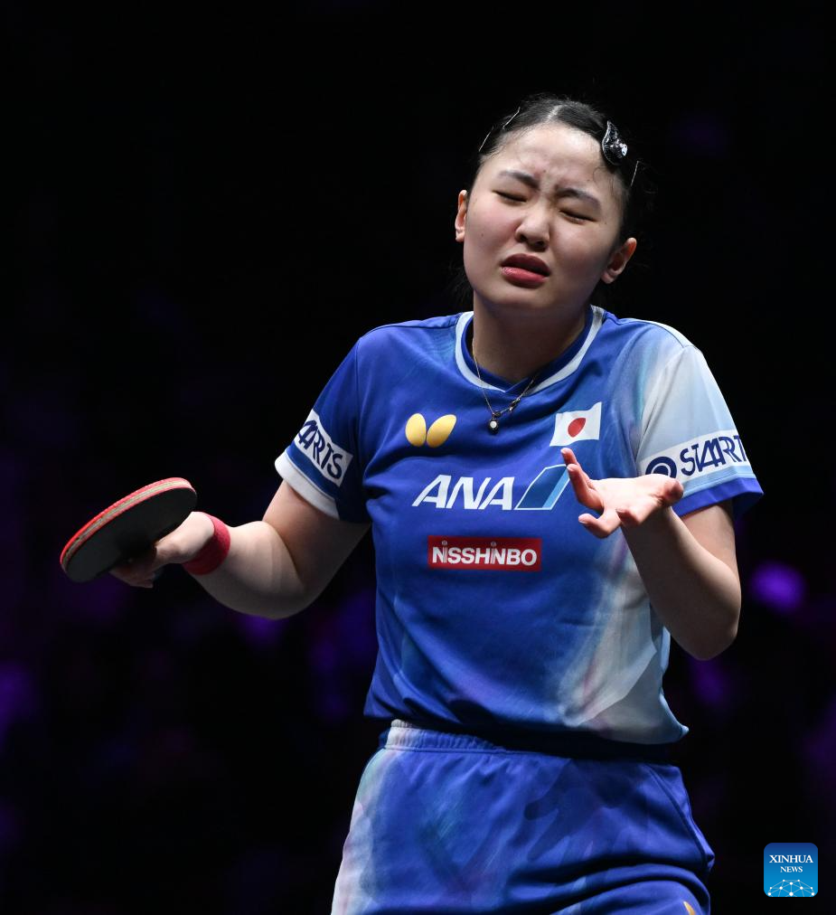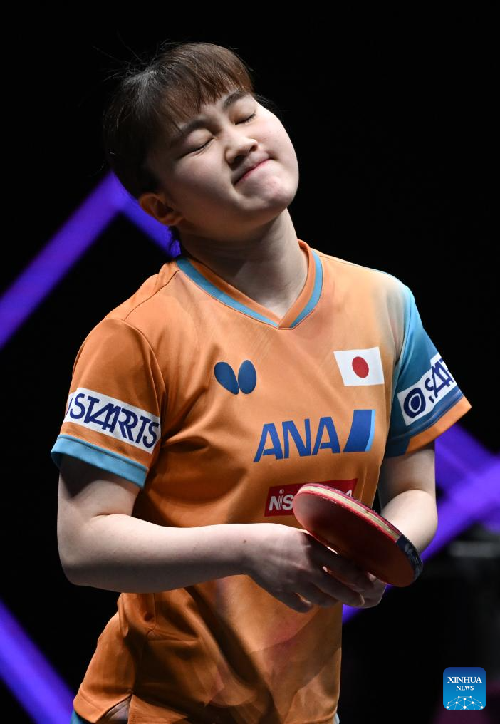 Harimoto Miwa reacts during the women's singles semifinal between Harimoto Miwa of Japan and Odo Satsuki of Japan at the WTT Champions Chongqing 2026 in southwest China's Chongqing, March 15, 2026. (Xinhua/Chen Cheng)