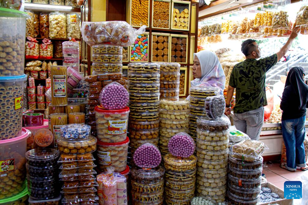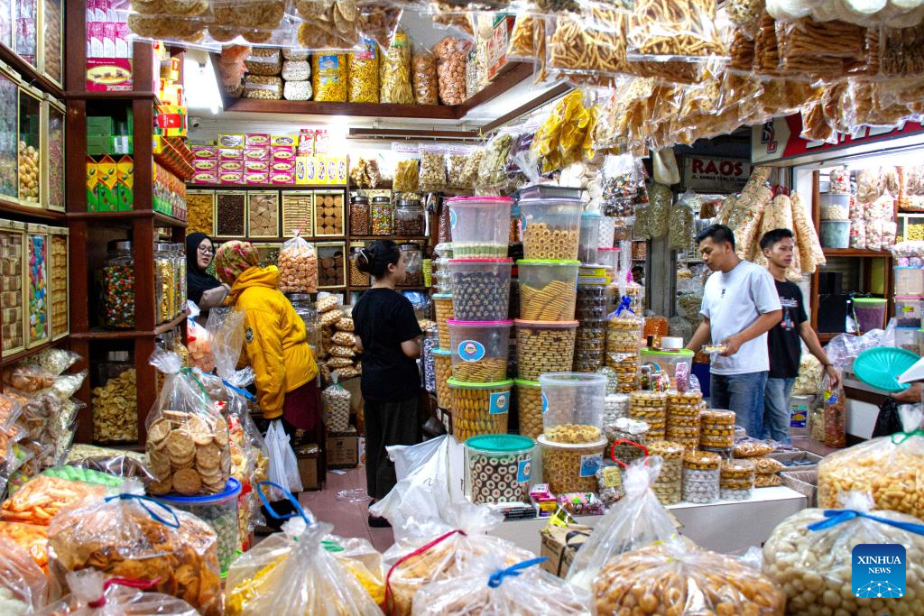 Customers buy traditional cookies in preparation for the upcoming Eid al-Fitr in Bandung, west Java Province, Indonesia, March 14, 2026. (Photo by Septianjar Muharam/Xinhua)