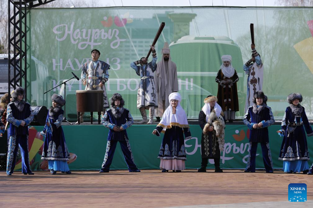 Actresses perform during a Nauryz festival celebration in Astana, Kazakhstan, March 14, 2026. Regarded as the beginning of a New Year and one of the most important festivals in Central Asian countries, Nauryz (also known as Nowruz) marks the first day of spring. (Photo by Kalizhan Ospanov/Xinhua)