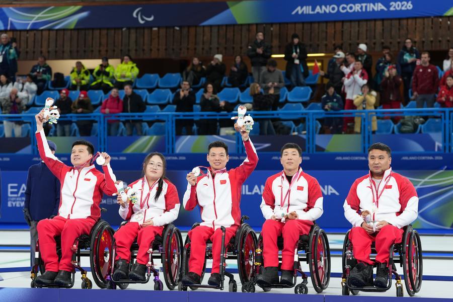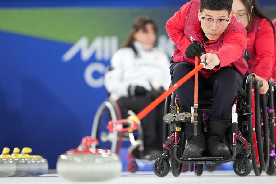 CORTINA D'AMPEZZO, Italy, March 14 (Xinhua) -- China was just one step away from its three-peat in Winter Paralympic wheelchair curling mixed team after losing to Canada 4-3 in the event's final clash at the Milan-Cortina 2026 here on Saturday.