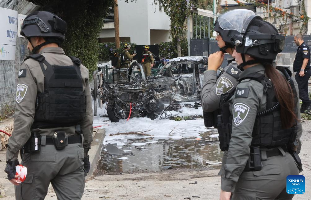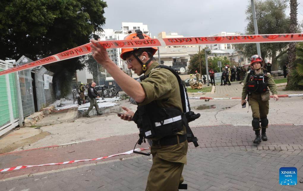 Israeli security and rescue forces work at the site of an Iranian strike in Tel Aviv, Israel, March 15, 2026. The U.S.-Israel-Iran conflict entered its 16th day on Sunday. (Photo by Gil Cohen Magen/Xinhua)