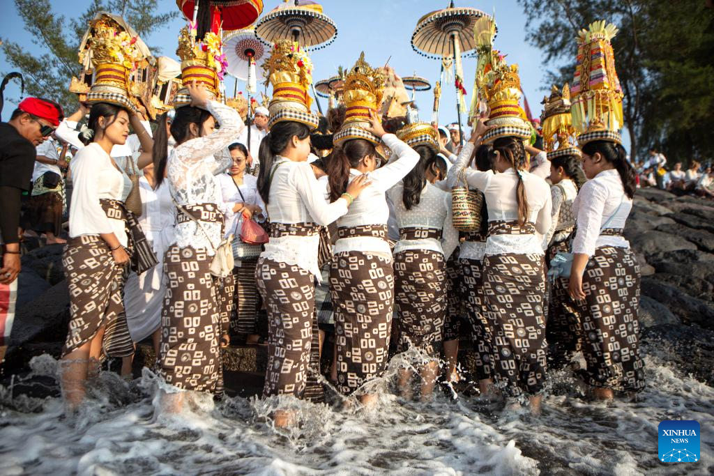 People participate in a Melasti ceremony in Gianyar Regency, Bali, Indonesia, on March 15, 2026. Hindu devotees in Indonesia held the Melasti ceremony before celebrating the Nyepi Day, the Balinese Day of Silence. According to the Balinese calendar, Nyepi Day is a holy day that ushers in the Hindu New Year. (Photo by Lana Prima/Xinhua)