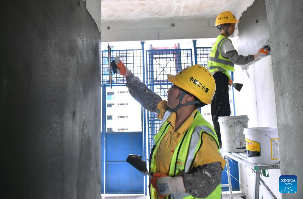 Workers work at the construction site of an urban village renovation project in Nanning City, south China's Guangxi Zhuang Autonomous Region, March 16, 2026. The urban village renovation project is a key project promoted by the local government, which has been progressing smoothly. It is expected that the new houses of the project can be delivered to the residents by the end of October this year. (Xinhua/Huang Xiaobang)