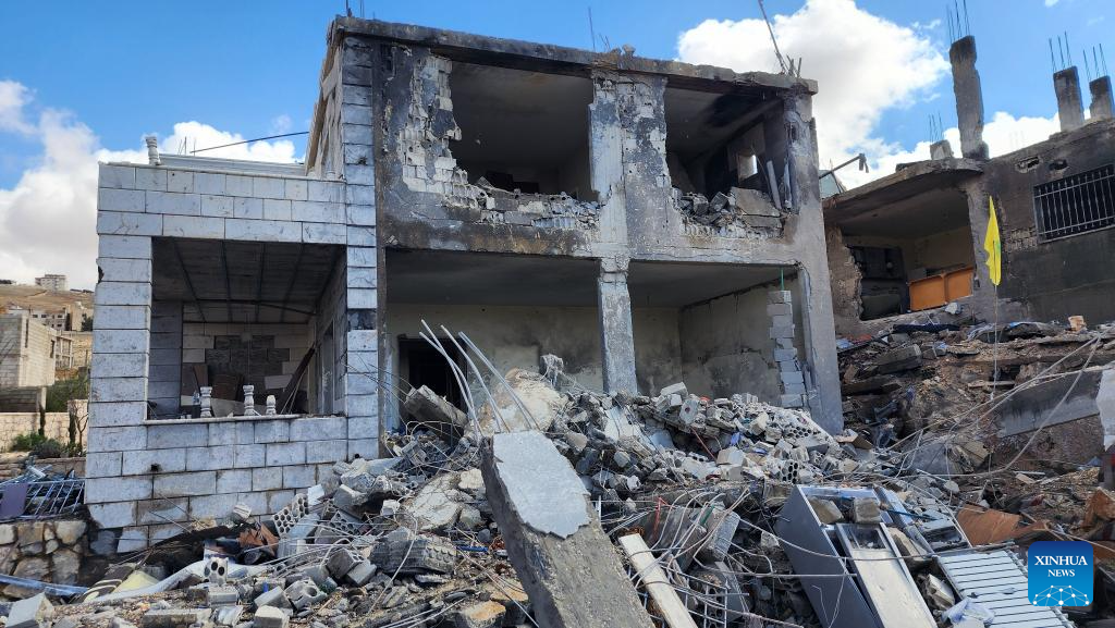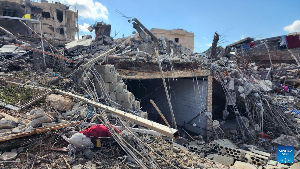 This photo taken with a mobile phone shows ruins after Israeli airstrikes in Dibbine, Lebanon, March 16, 2026. The death toll from Israeli attacks on Lebanon has risen to 886 since March 2, with 2,141 people injured, the Lebanese Public Health Ministry said. (Photo by Taher Abu Hamdan/Xinhua)