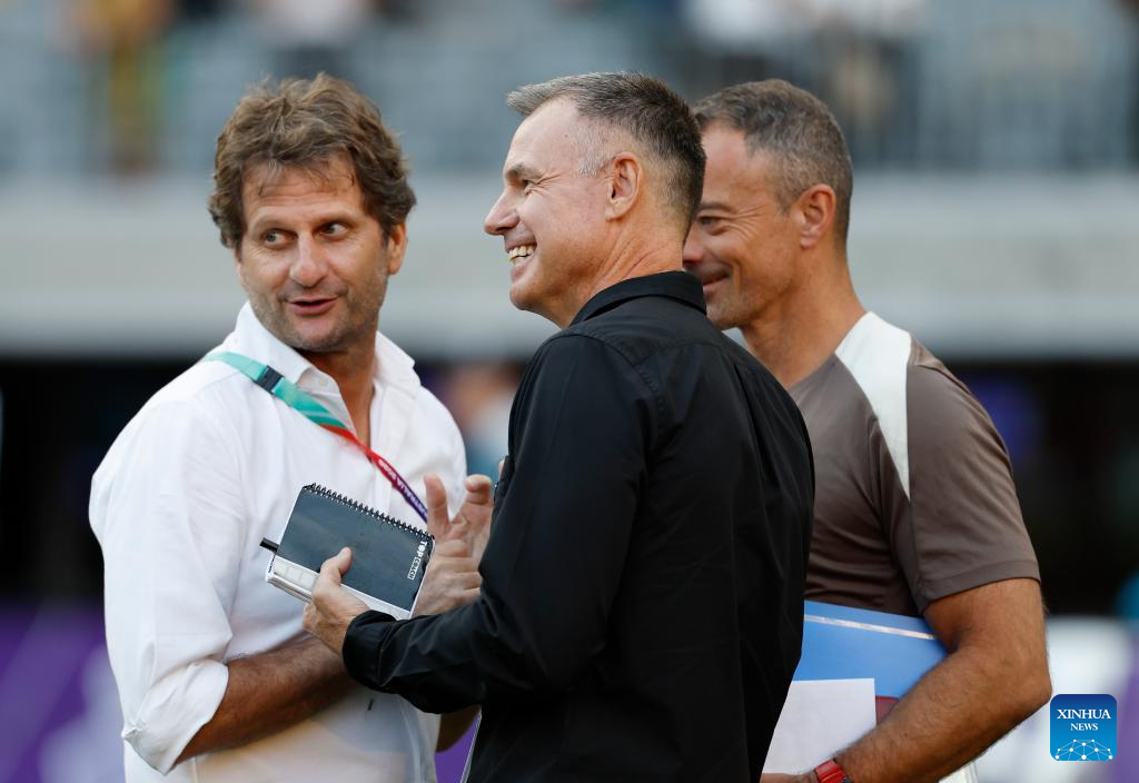 Ante Milicic (C), head coach of China, is seen before the semifinal of Women's Asian Cup between China and Australia at Perth Stadium in Perth, Australia, March 17, 2026. (Xinhua/Ma Ping)