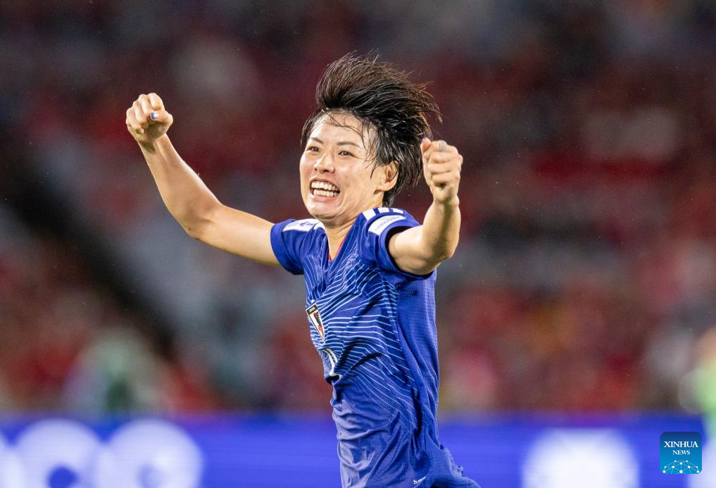 Kumagai Saki of Japan celebrates during the semifinal of Women's Asian Cup between Japan and South Korea in Sydney, Australia, March 18, 2026. (Photo by Hu Jingchen/Xinhua)