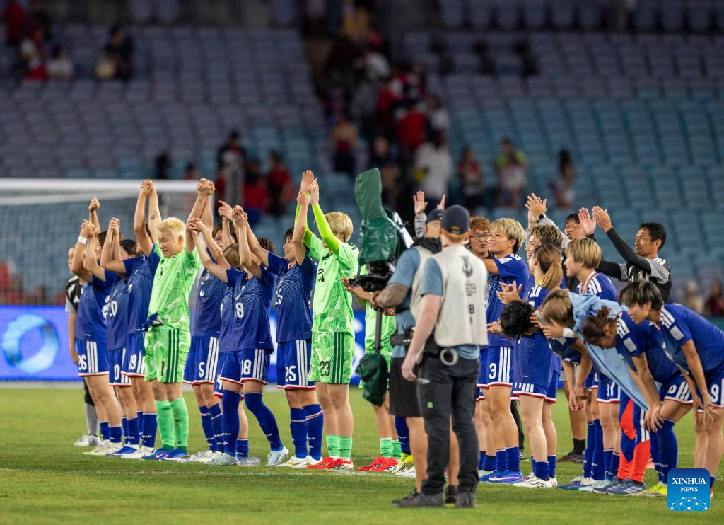 Players of Japan celebrate during the semifinal of Women's Asian Cup between Japan and South Korea in Sydney, Australia, March 18, 2026. (Photo by Hu Jingchen/Xinhua)