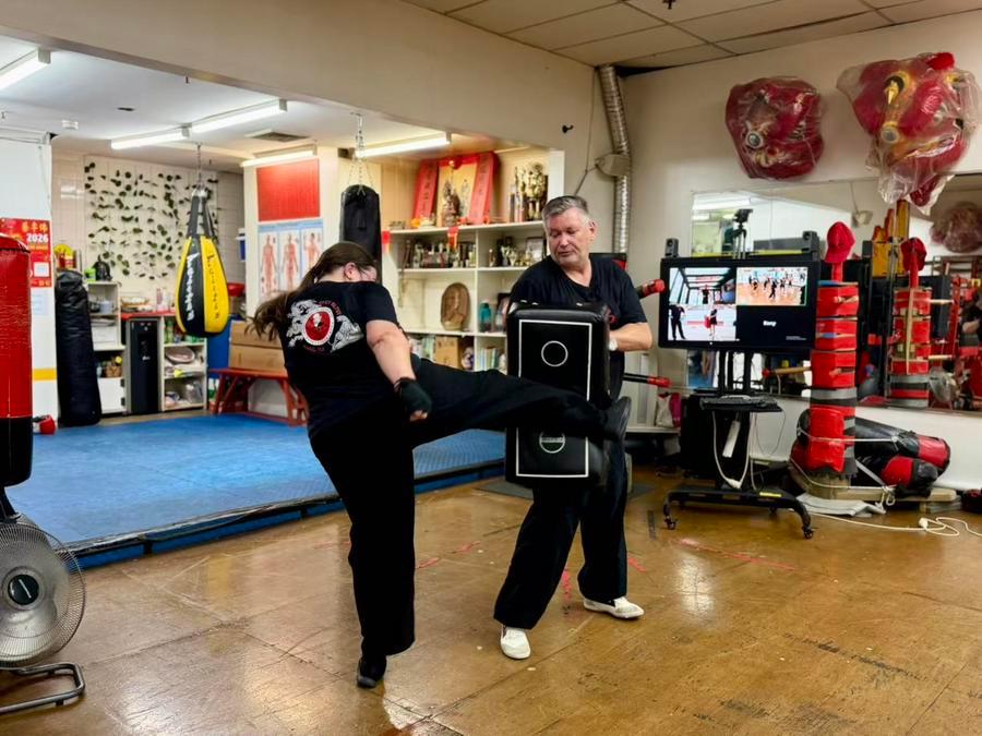 "My sifu is the fifth generation. I'm the sixth. The seventh and eighth are here too," Whelan says proudly, gesturing toward the younger students training in the hall. "And the kids practicing over there? That's the ninth generation."
