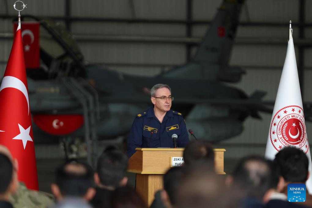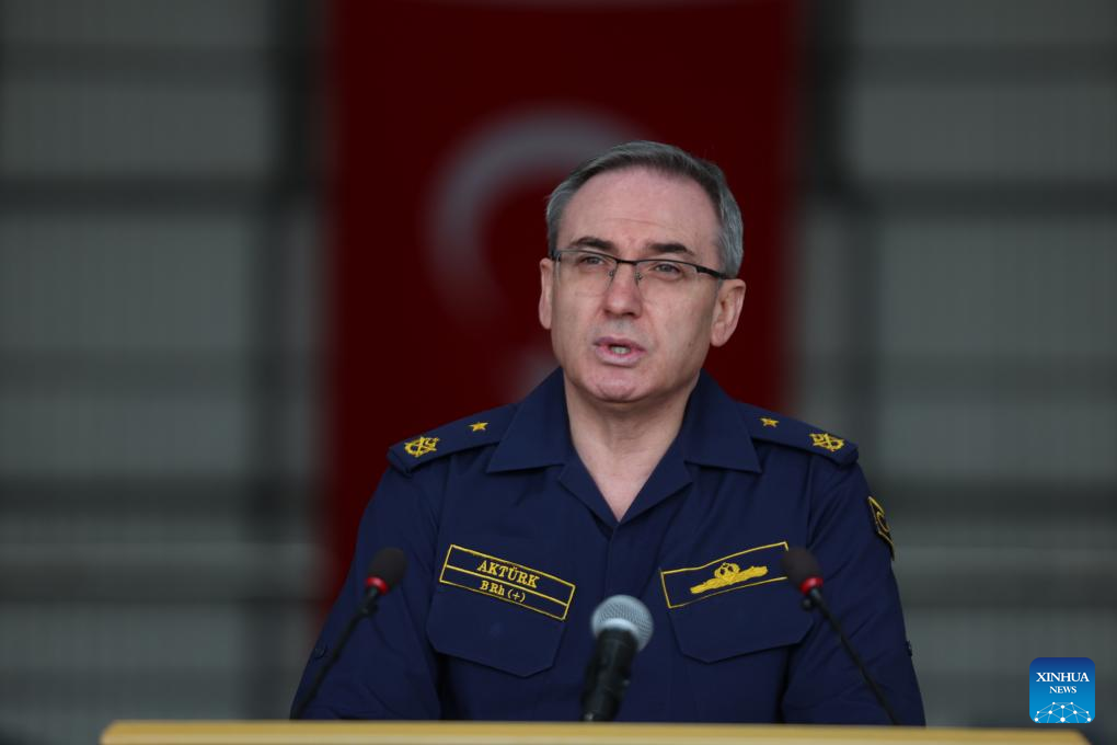Turkish Defense Ministry Spokesperson Rear Admiral Zeki Akturk speaks at a press briefing in Incirlik Air Base in the southern province of Adana, Türkiye, on March 18, 2026. (Mustafa Kaya/Handout via Xinhua)