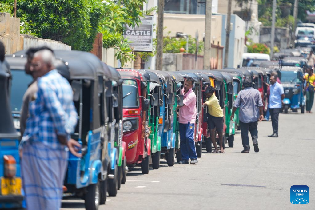 People line up to refuel their vehicles at a gas station in Colombo, Sri Lanka, March 17, 2026. (Photo by Thilina Kaluthotage/Xinhua)