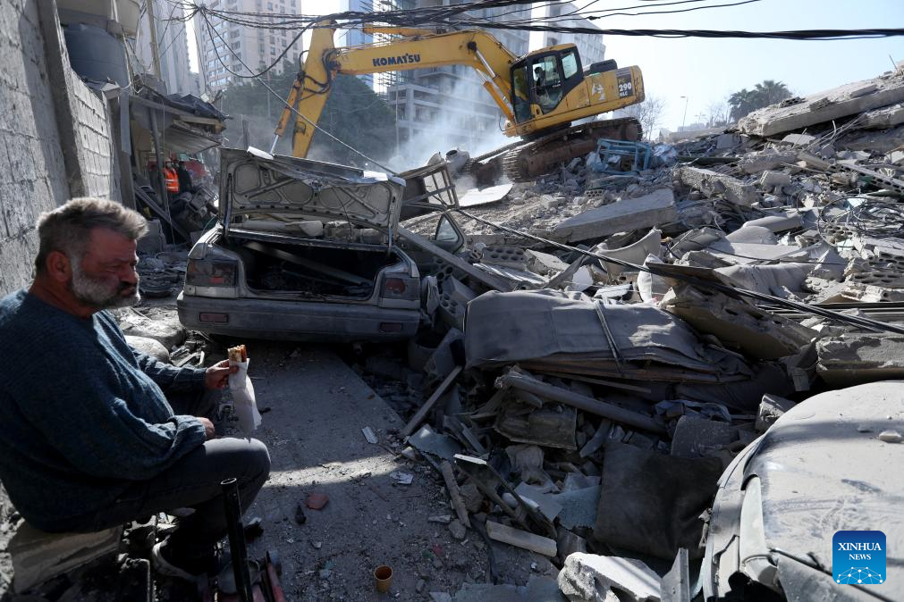 This photo taken on March 18, 2026 shows debris of a damaged building after Israeli airstrikes in the Bashoura area of Beirut, Lebanon. At least six civilians were killed and 24 others wounded in two Israeli airstrikes on the Lebanese capital Beirut at dawn on Wednesday, said the Lebanese Ministry of Public Health. (Photo by Bilal Jawich/Xinhua)