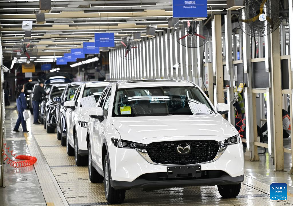 Staff members work on a production line at a workshop of Changan Mazda in Nanjing, east China's Jiangsu Province, March 17, 2026. In recent years, Jiangsu, a key automotive manufacturing hub in China, has accelerated its automotive industry growth by closely coordinating vehicle manufacturers and auto part suppliers.
