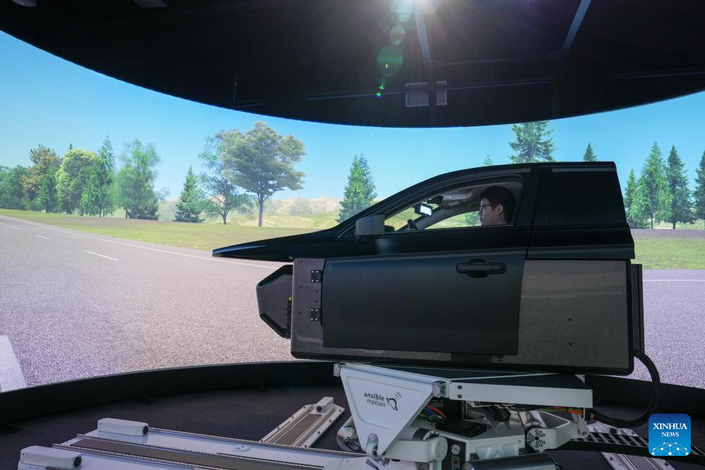 A staff member conducts virtual chassis tuning at an industrial innovation center in Liyang, east China's Jiangsu Province, June 11, 2025. (Xinhua/Li Bo)