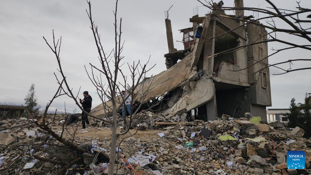 Photo taken with a mobile phone on March 19, 2026 shows buildings destroyed by Israeli airstrikes in the town of Chaat, eastern Lebanon. The death toll from Israeli airstrikes on Lebanon since March 2 has reached 1,001, with 2,584 injuries, the Lebanese Public Health Ministry reported Thursday. (Photo by Taher Abu Hamdan/Xinhua)