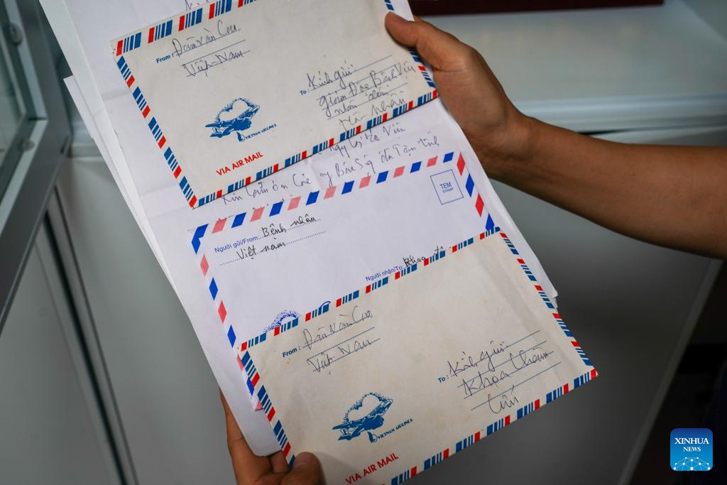 This photo taken on Feb. 28, 2026 shows thank-you notes given by foreign patients at the People's Hospital of Hekou Yao Autonomous County, southwest China's Yunnan Province. (Xinhua/Peng Yikai)