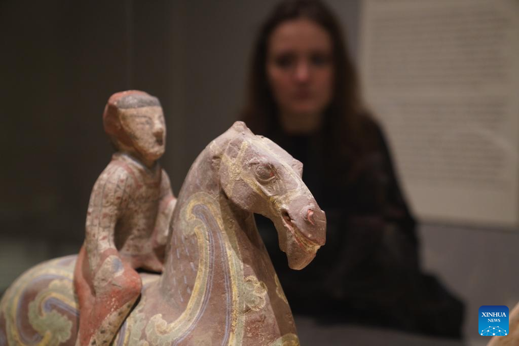 A woman looks at a pottery horse at the Metropolitan Museum of Art in New York, the United States, on March 19, 2026. Asia Week New York 2026 opened in New York City on Thursday, showcasing Asian art works from museums, galleries and auction houses. (Xinhua/Zhang Fengguo)