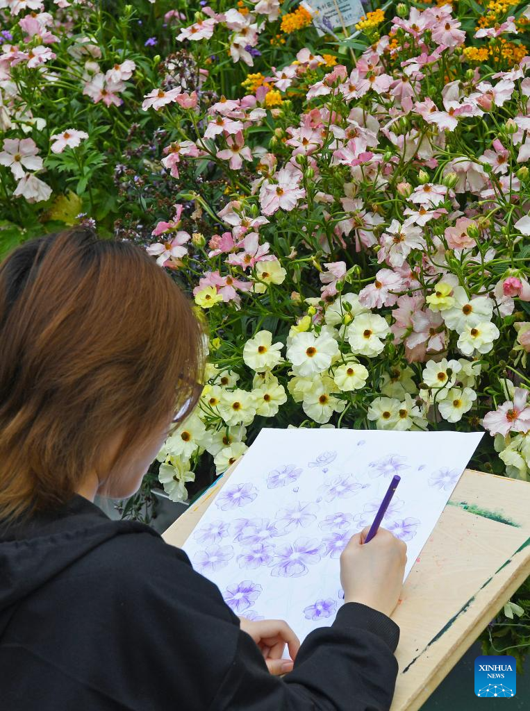 A student draws flowers during a painting competition at the Hong Kong Flower Show in south China's Hong Kong, on March 20, 2026. The Hong Kong Flower Show kicked off on Friday, showcasing a dazzling array of blossoms, artistic floral displays, and landscaped gardens. (Xinhua/Chen Duo)