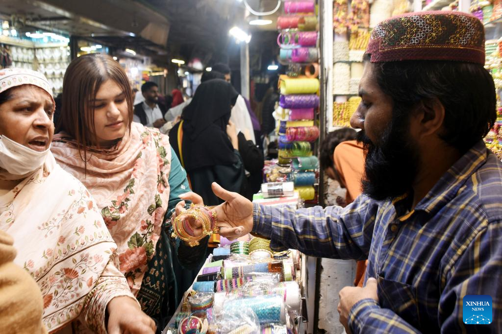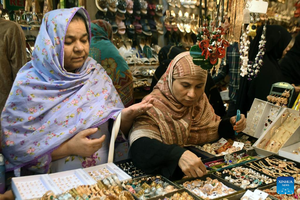 People shop ahead of Eid al-Fitr, which marks the end of Ramadan, in Lahore, Pakistan, on March 19, 2026. (Photo by Sajjad/Xinhua)