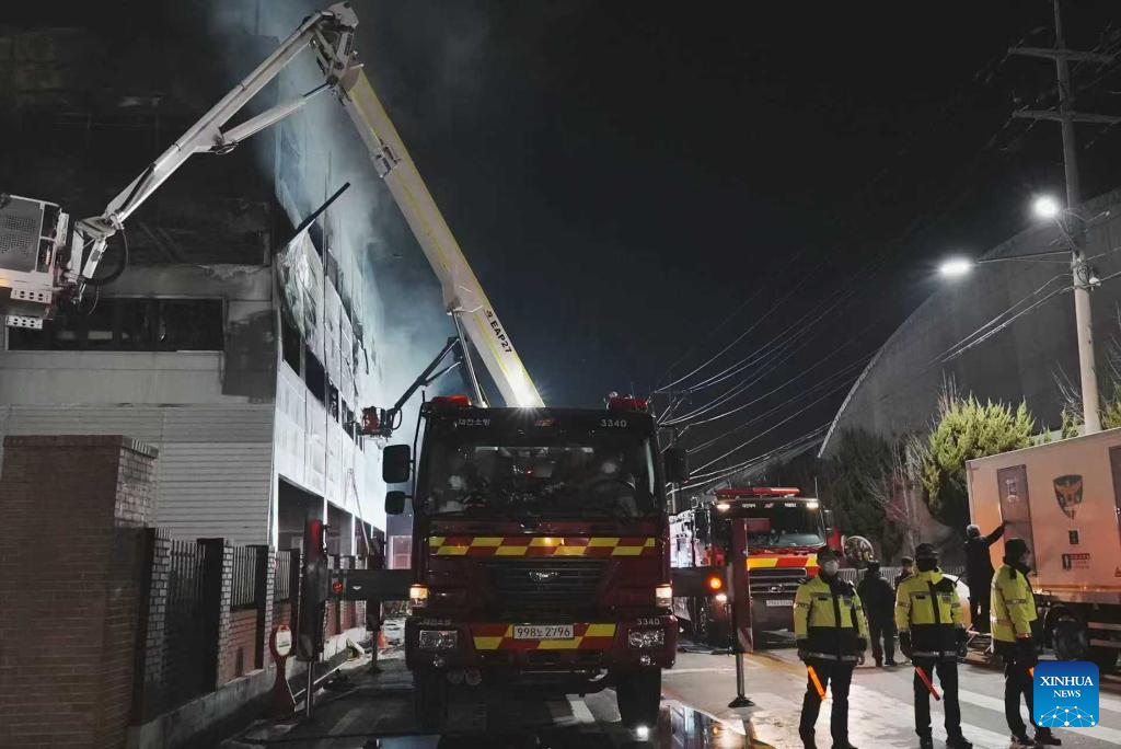 DAEJEON, South Korea, March 20 (Xinhua) -- A large-scale fire broke out Friday at an automotive parts manufacturing factory in Daejeon in South Korea, leaving 55 people injured and 14 others missing, local fire authorities confirmed.