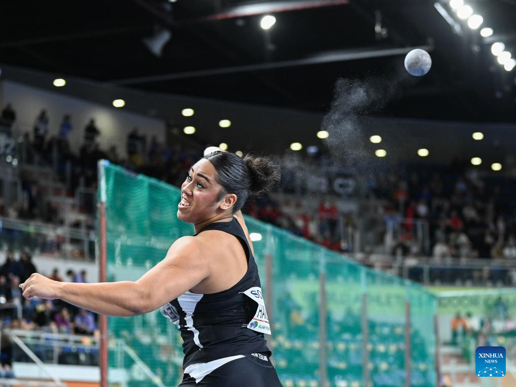 Tapenisa Havea of New Zealand competes during the women's shot put final at the 2026 World Athletics Indoor Championships in Torun, Poland, March 20, 2026. (Xinhua/Zhang Haofu)