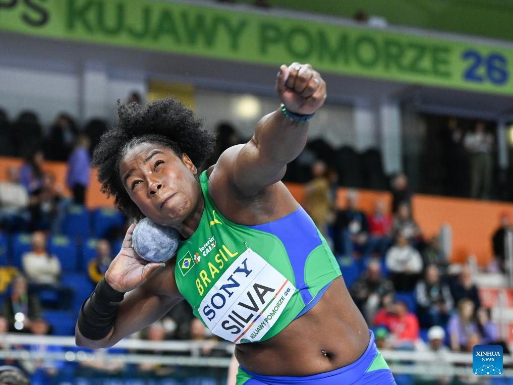 Ana Caroline Silva of Brazil competes during the women's shot put final at the 2026 World Athletics Indoor Championships in Torun, Poland, March 20, 2026. (Xinhua/Zhang Haofu)