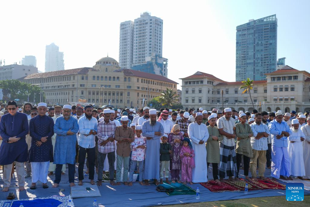 People attend prayers to celebrate Eid al-Fitr in Colombo, Sri Lanka, March 21, 2026. (Photo by Thilina Kaluthotage/Xinhua)