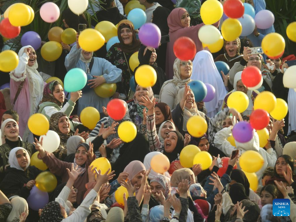 People celebrate the Eid al-Fitr in Cairo, Egypt, March 20, 2026. (Xinhua/Liu Minhao)