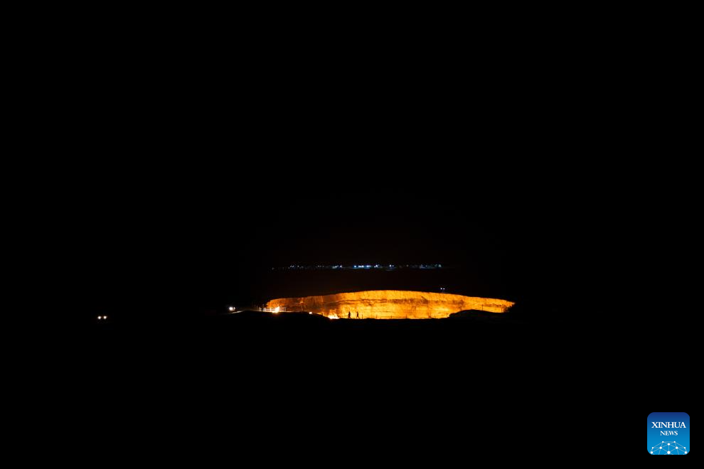 This photo taken on March 19, 2026 shows the Darvaza Gas Crater, also known as "Door to Hell", in Darvaza, Turkmenistan. (Xinhua/Li Renzi)