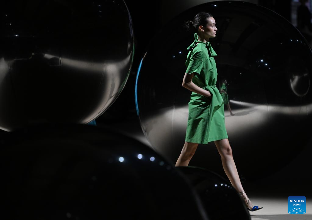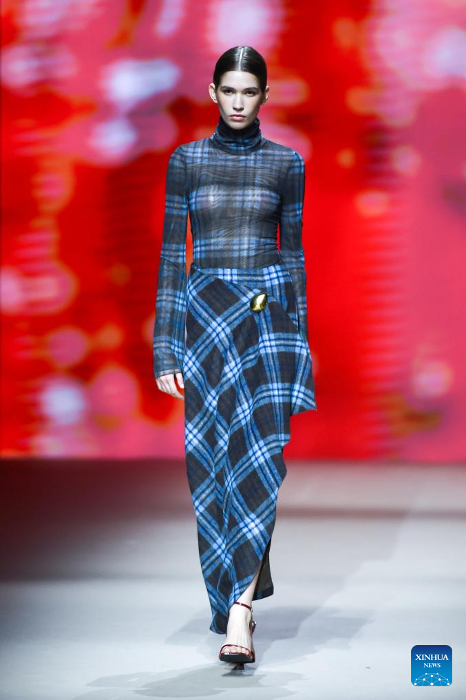 A model presents creations of Agatha Ruiz de la Prada during the Mercedes-Benz Fashion Week in Madrid, Spain, on March 20, 2026. (Xinhua/Cheng Min)