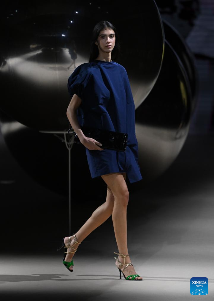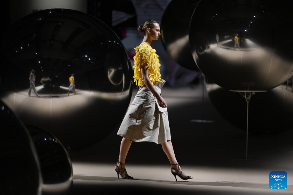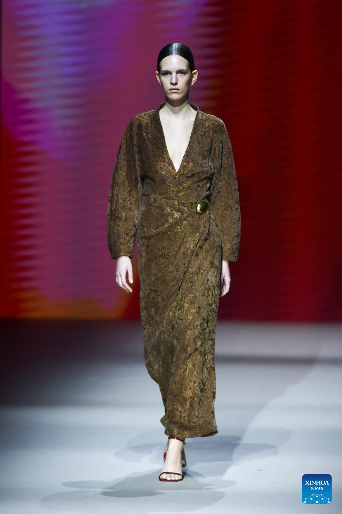 A model presents creations of Coosy x Miguel Palacio during the Mercedes-Benz Fashion Week in Madrid, Spain, on March 20, 2026. (Xinhua/Cheng Min)