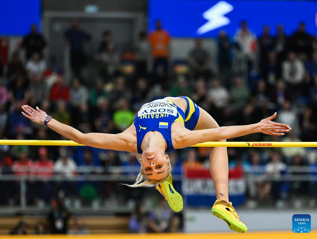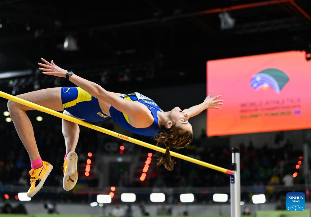 Yuliia Levchenko of Ukraine competes during the women's high jump final at the 2026 World Athletics Indoor Championships in Torun, Poland, March 20, 2026. (Xinhua/Zhang Haofu)