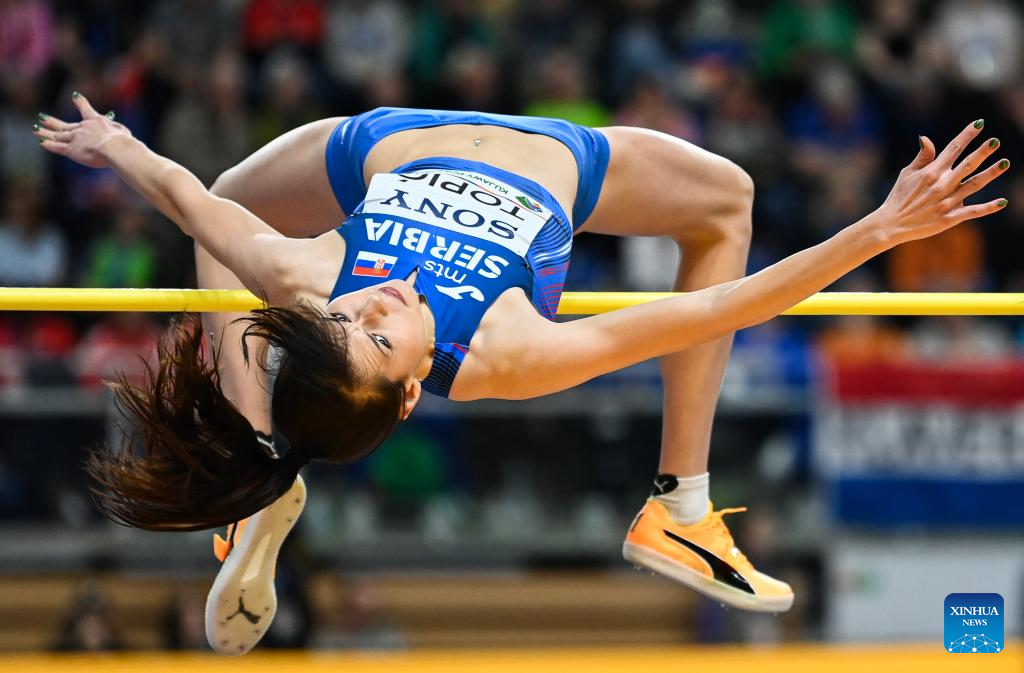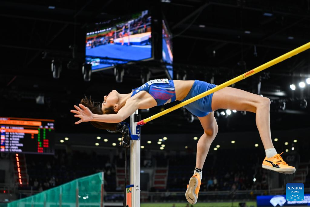 Angelina Topic of Serbia competes during the women's high jump final at the 2026 World Athletics Indoor Championships in Torun, Poland, March 20, 2026. (Xinhua/Zhang Haofu)
