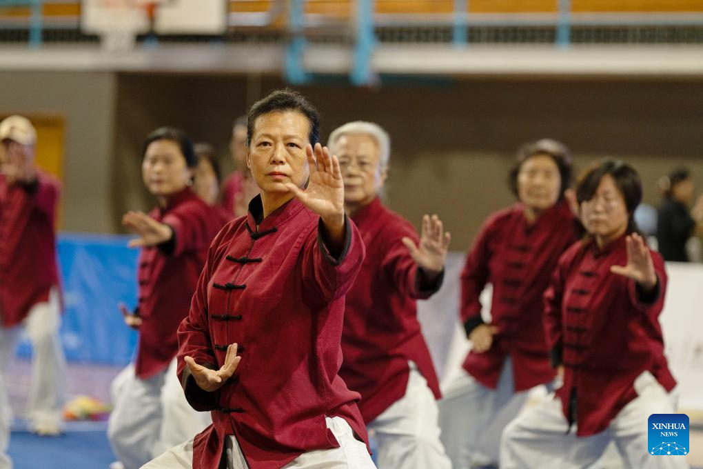 Enthusiasts perform Taijiquan, a kind of Chinese traditional martial arts, at the opening ceremony of the first New Zealand Taijiquan Open Championship in Auckland, New Zealand, on March 21, 2026. (Xinhua/Long Lei)