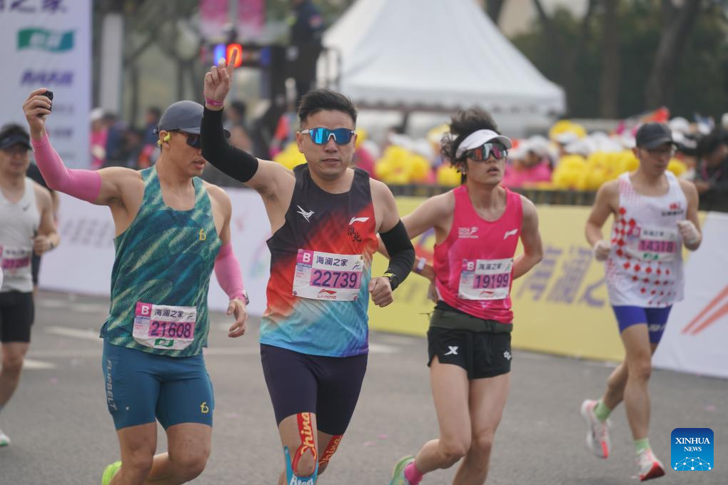 Participants compete during the Wuxi Marathon 2026 in Wuxi, east China's Jiangsu Province, March 22, 2026. (Photo by Liu Zhenrui/Xinhua)