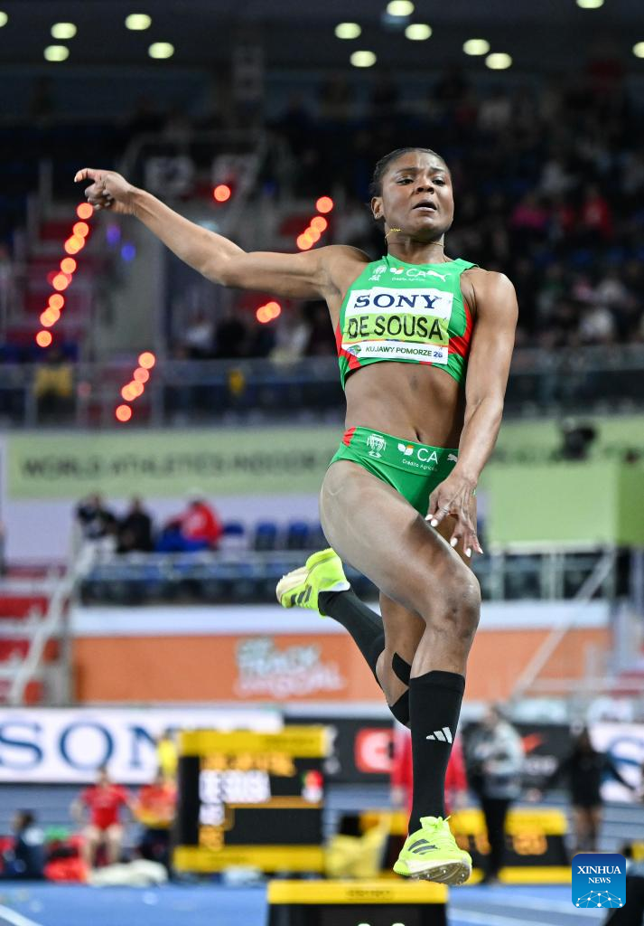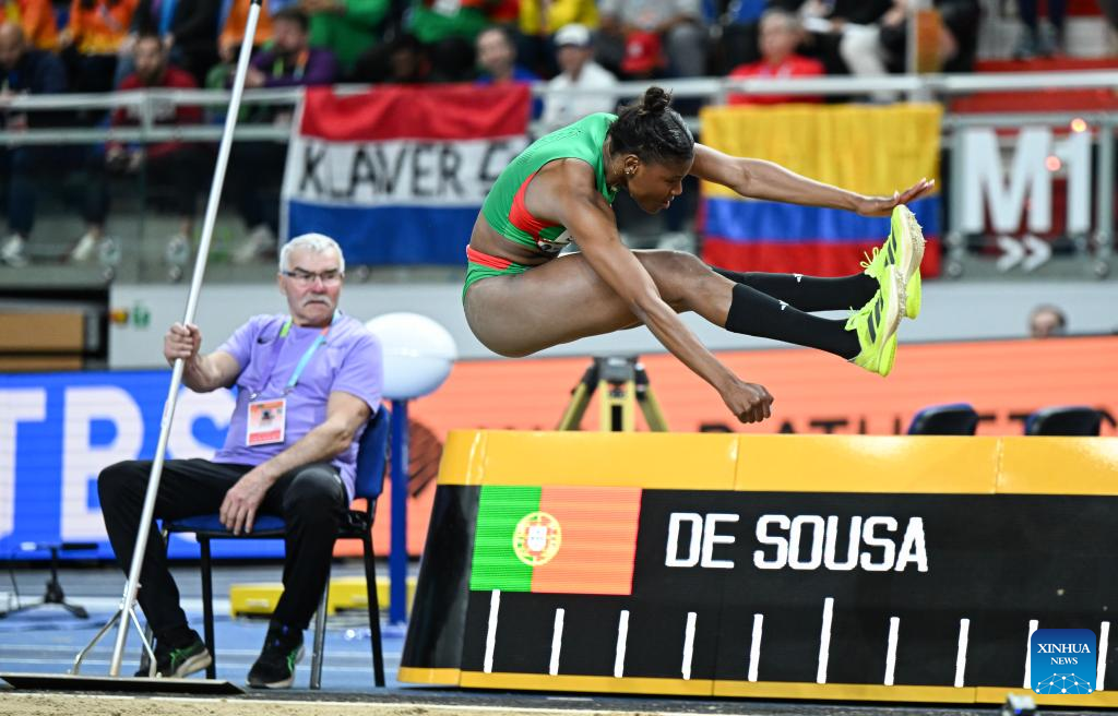 Agate De Sousa of Portugal competes during the women's long jump final at the 2026 World Athletics Indoor Championships in Torun, Poland, March 22, 2026. (Xinhua/Zhang Haofu)