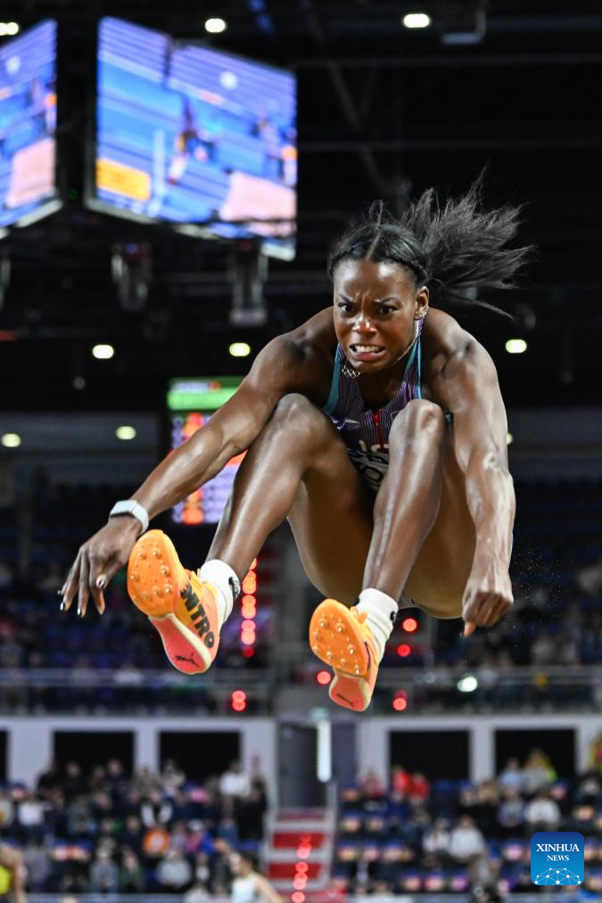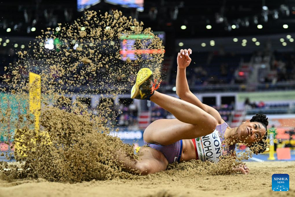 Monae' Nichols of the United States competes during the women's long jump final at the 2026 World Athletics Indoor Championships in Torun, Poland, March 22, 2026. (Xinhua/Zhang Haofu)