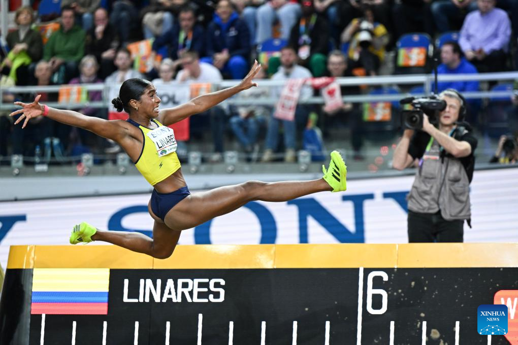 Natalia Linares of Colombia competes during the women's long jump final at the 2026 World Athletics Indoor Championships in Torun, Poland, March 22, 2026. (Xinhua/Zhang Haofu)