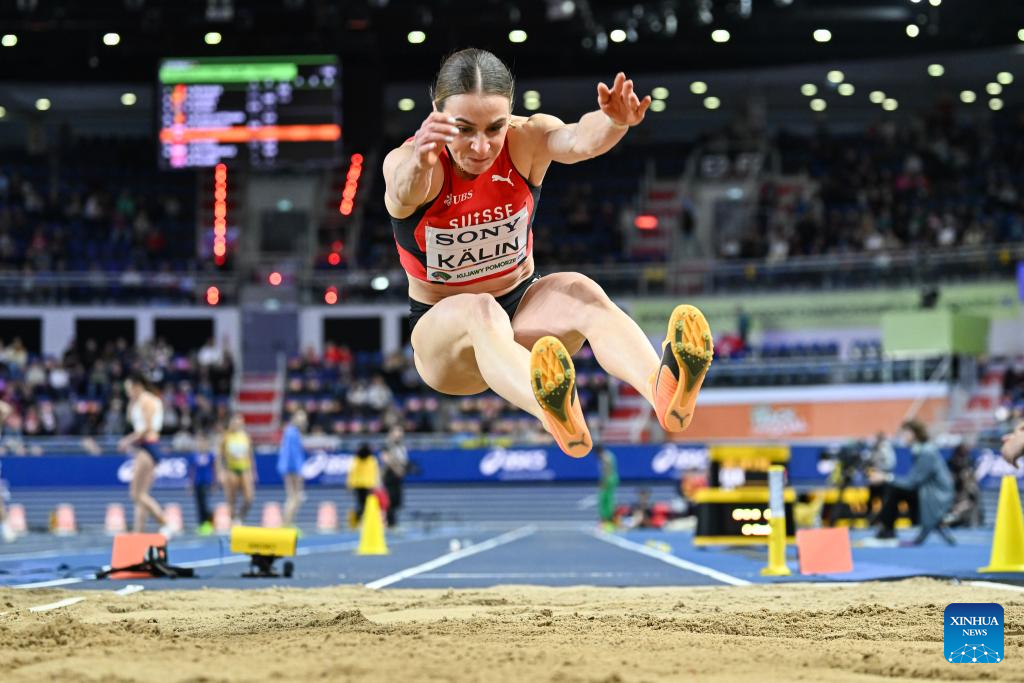 Annik Kalin of Switzerland competes during the women's long jump final at the 2026 World Athletics Indoor Championships in Torun, Poland, March 22, 2026. (Xinhua/Zhang Haofu)