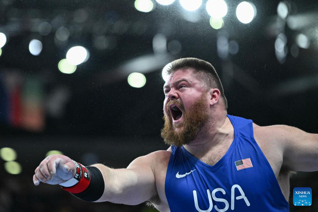 Roger Steen of the United States reacts during the men's shot put final at the 2026 World Athletics Indoor Championships in Torun, Poland, March 22, 2026. (Xinhua/Zhang Haofu)