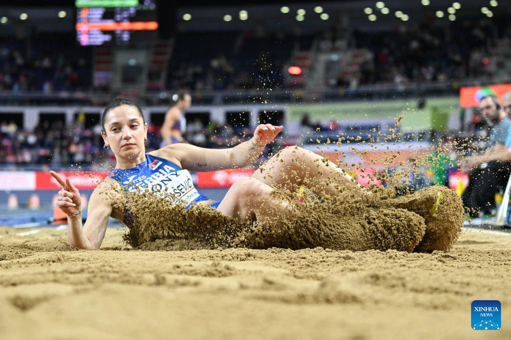 Milica Gardasevic of Serbia competes during the women's long jump final at the 2026 World Athletics Indoor Championships in Torun, Poland, March 22, 2026. (Xinhua/Zhang Haofu)