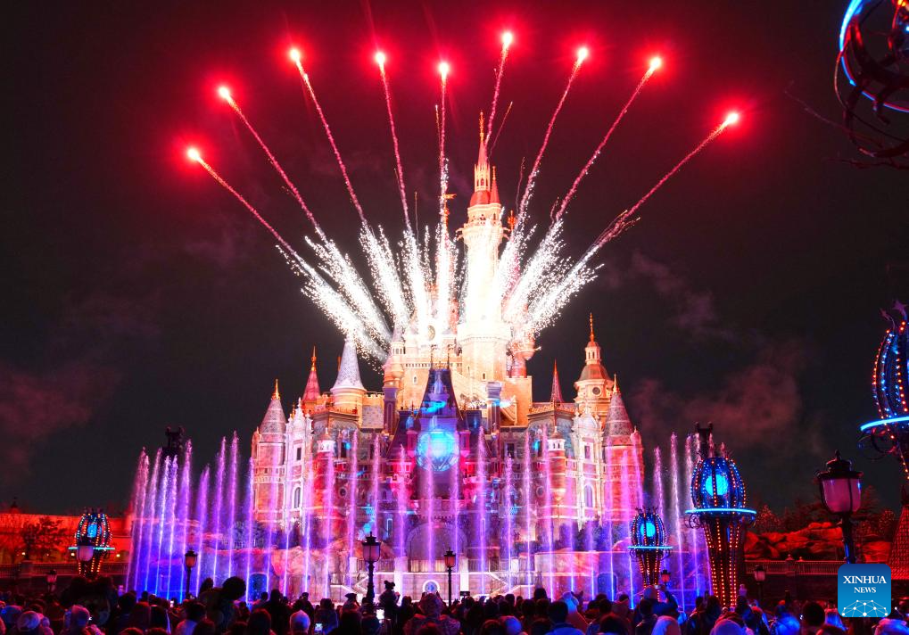 A firework show is seen at the Shanghai Disneyland in Shanghai, east China, March 20, 2026. A series of celebrations designed for the 10th anniversary of the opening of Shanghai Disneyland started here on Friday. The Shanghai Disneyland opened on June 16, 2016. (Xinhua/Liu Ying)