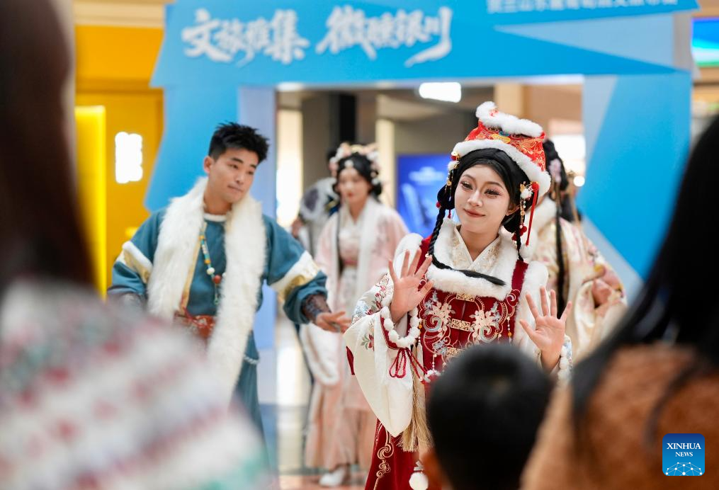 An actress interacts with citizens during a tourism promotion event in Yinchuan, northwest China's Ningxia Hui Autonomous Region. (Xinhua/Yang Zhisen)