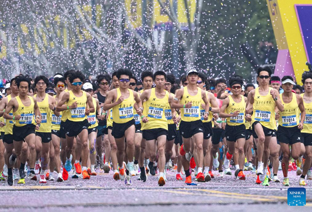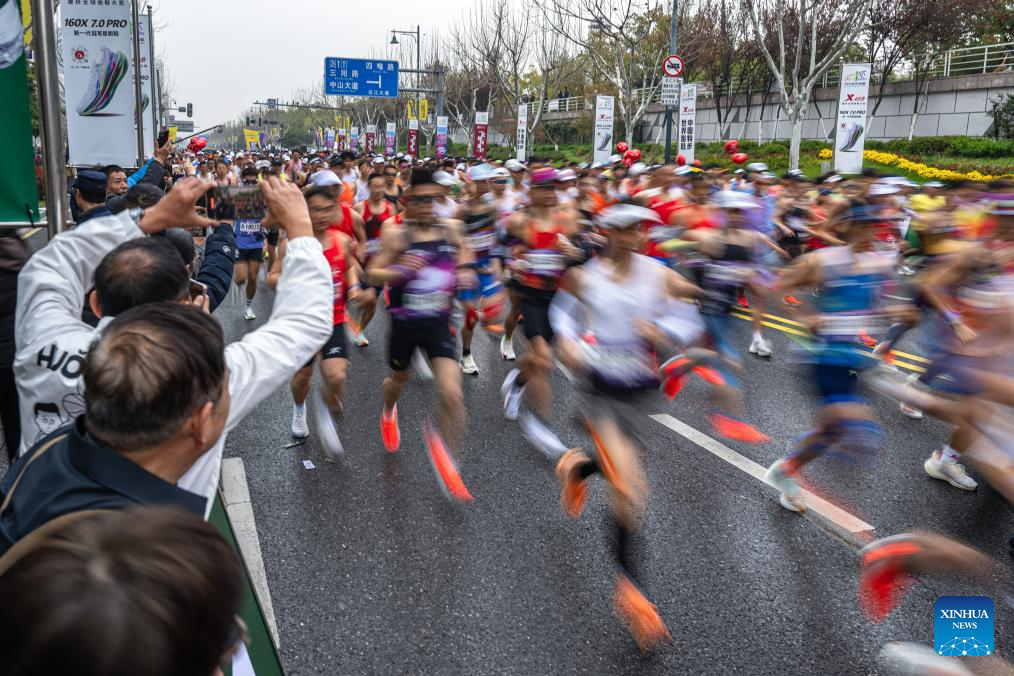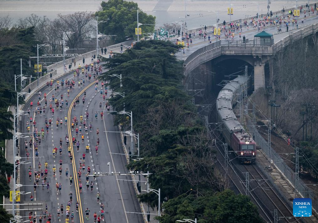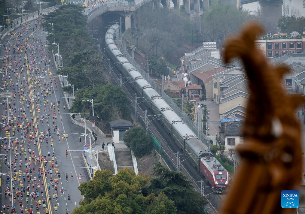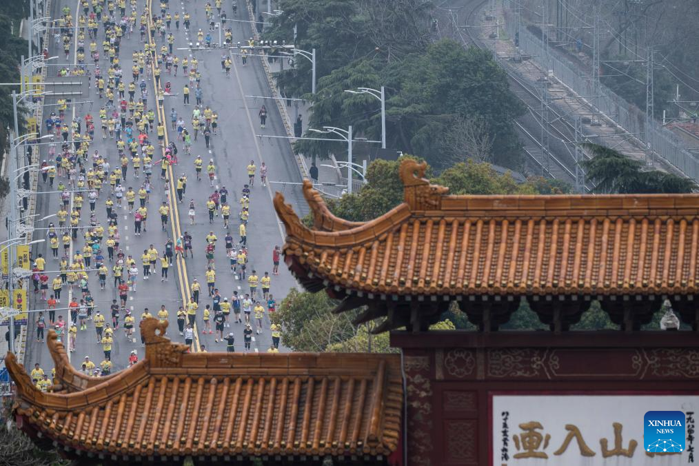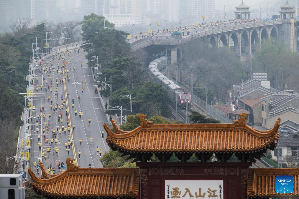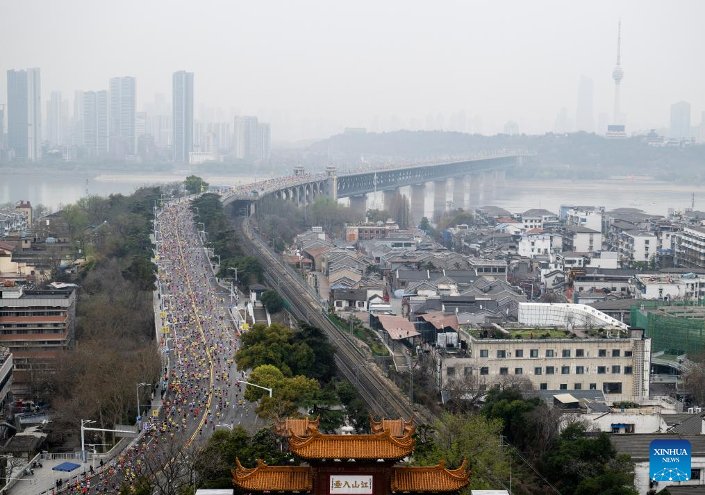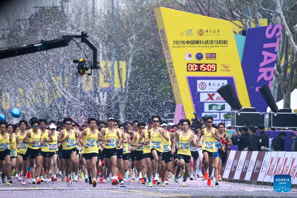 Participants compete during the Bank of China Wuhan Marathon 2026 in Wuhan, central China's Hubei province, March 22, 2026. (Xinhua/Xiao Yijiu)